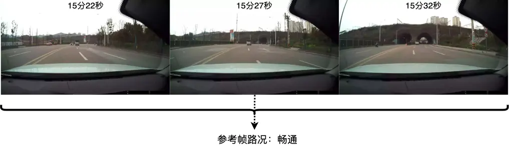 参考帧:存在图像序列内路况状态渐变的情况,每个图像序列存在一幅参考帧图像,参考帧时刻的路况状态为该图像序列的真值路况状态。
