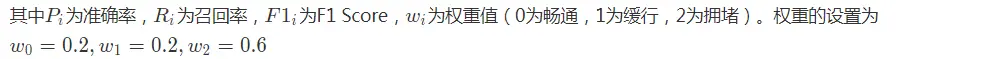 路况包含通畅/缓行/拥堵三种状态,比赛评分考量每个图像序列的路况分类的准确情况,采用加权 F1 Score 作为算法评价指标。