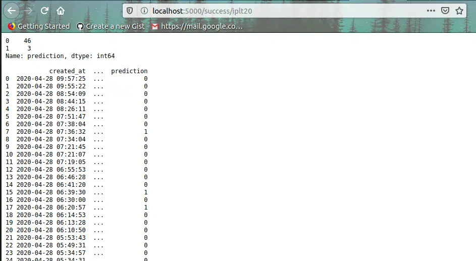 Flask服务器将接收与iplt20相关的数据和新tweets请求,并使用该模型预测标签并返回结果。