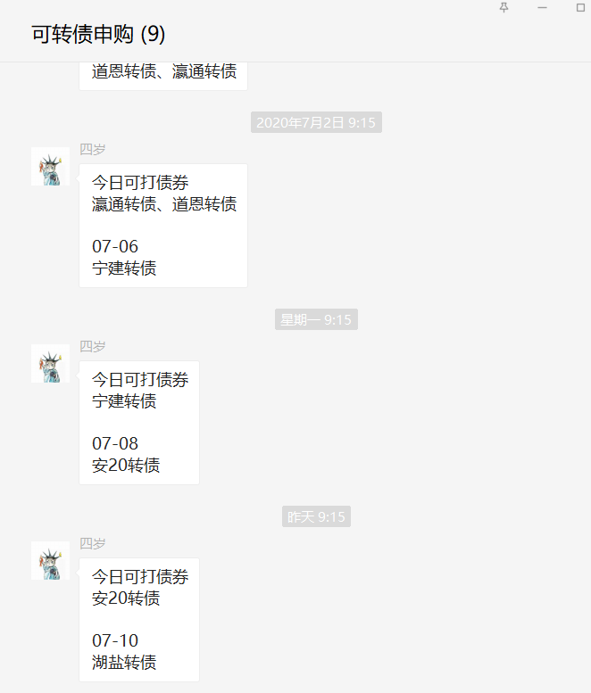 如果有可转债可申购,则自动发在群里进行提醒