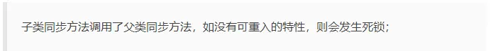 注意,synchronized 内置锁 是一种 对象锁(锁的是对象而非引用变量),作用粒度是对象 ,可以用来实现对 临界资源的同步互斥访问 ,是 可重入 的。其可重入最大的作用是避免死锁,如: