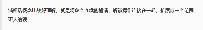 在大多数的情况下,上述观点是正确的。但是如果一系列的连续加锁解锁操作,可能会导致不必要的性能损耗,所以引入锁粗话的概念。