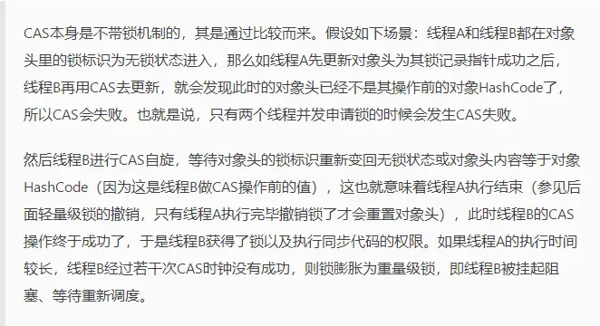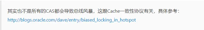 而CAS恰好会导致Cache一致性流量,如果有很多线程都共享同一个对象,当某个Core CAS成功时必然会引起总线风暴,这就是所谓的本地延迟,本质上偏向锁就是为了消除CAS,降低Cache一致性流量。