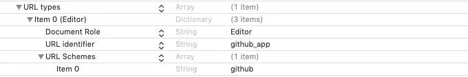 找到info.plist文件,添加URL types便签,在它的item下配置对应的URL identifier与URL Schemes