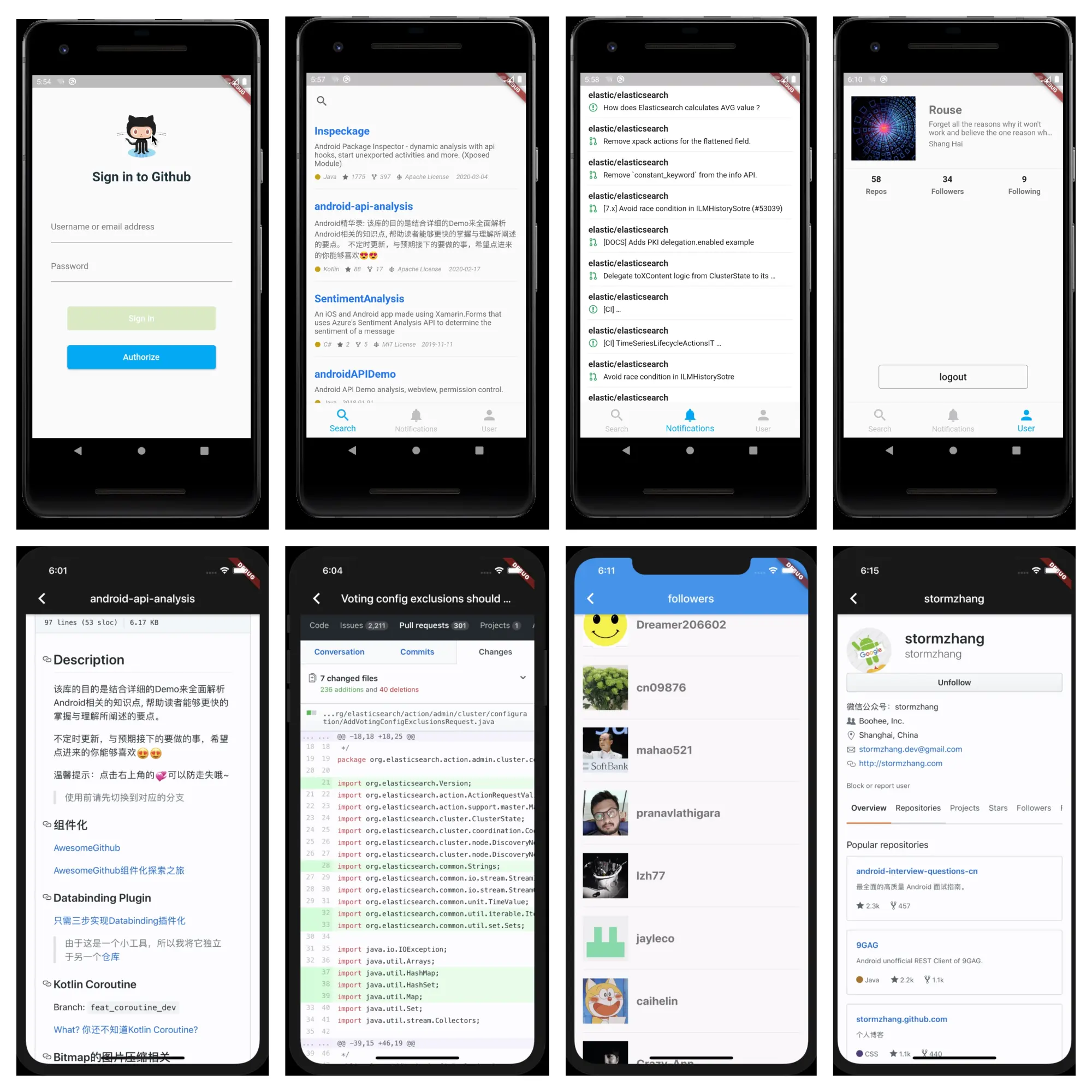 当然如果你想了解Android原生,AwesomeGithub是一个不错的选择。它是flutter_github的纯Android版本。