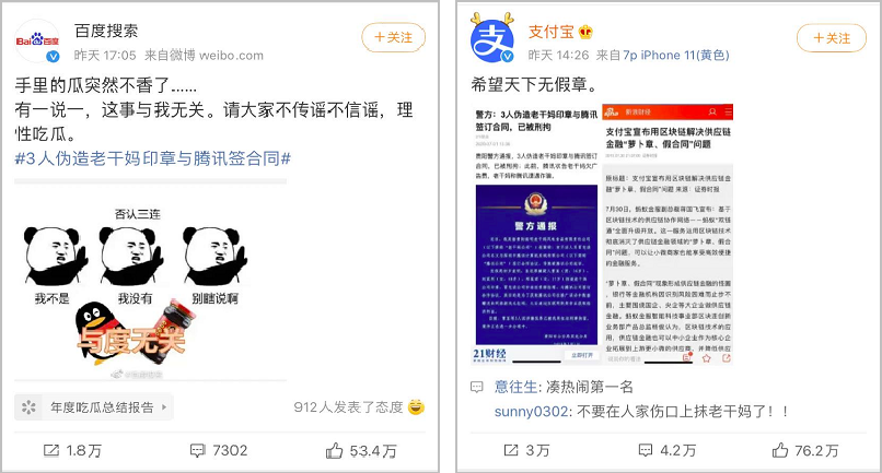 腾讯自家抱抱安慰,而阿里系忙着组团围观看戏。
