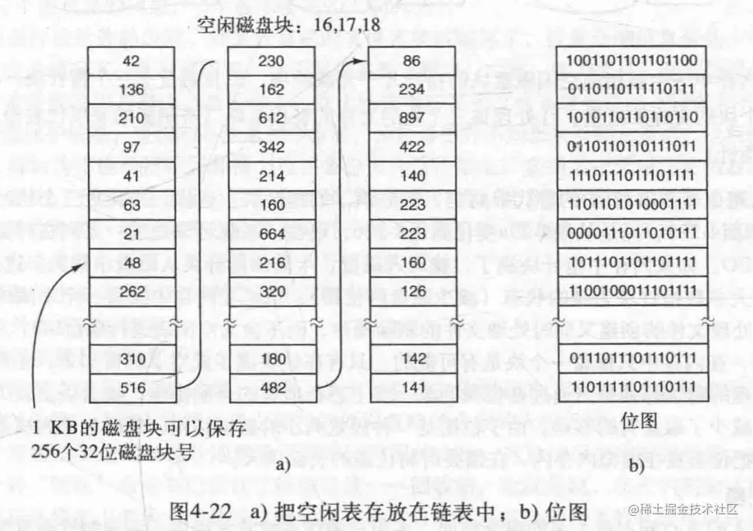 在位图中,这就没必要,因为位图是按块序号排序的,所以分配的结果是可以把文件比较紧凑地聚集在一起,这样就减少了磁盘臂的运动。