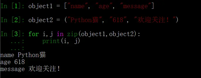 基本用法:像拉链一样,将多个可迭代对象组合起来,然后可以用 for 循环依次取出,或者一次性将结果存入列表、元组或者字典之类的容器中。