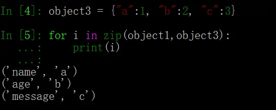但是,如果把字典作为 zip() 的参数,会是什么结果呢?字典是 key-value 键值对形式,跟列表之类的单一元素结构不同。