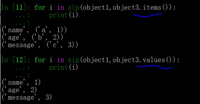 实验一下,可以看出,zip() 默认只会遍历字典的 key 值: