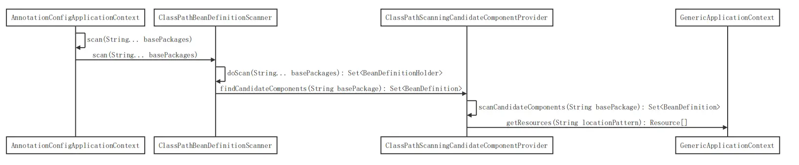 在 ClassPathScanningCandidateComponentProvider 根据需要扫描的路径调用 GenericApplicationContext 的 getResources 方法,该方法会去递归扫描包路径下面所有的 Class 文件然后将其解析为 Resource 数组返回;就算一个类没有被 @Component 等注解修饰也会加载到 Resource 数组中