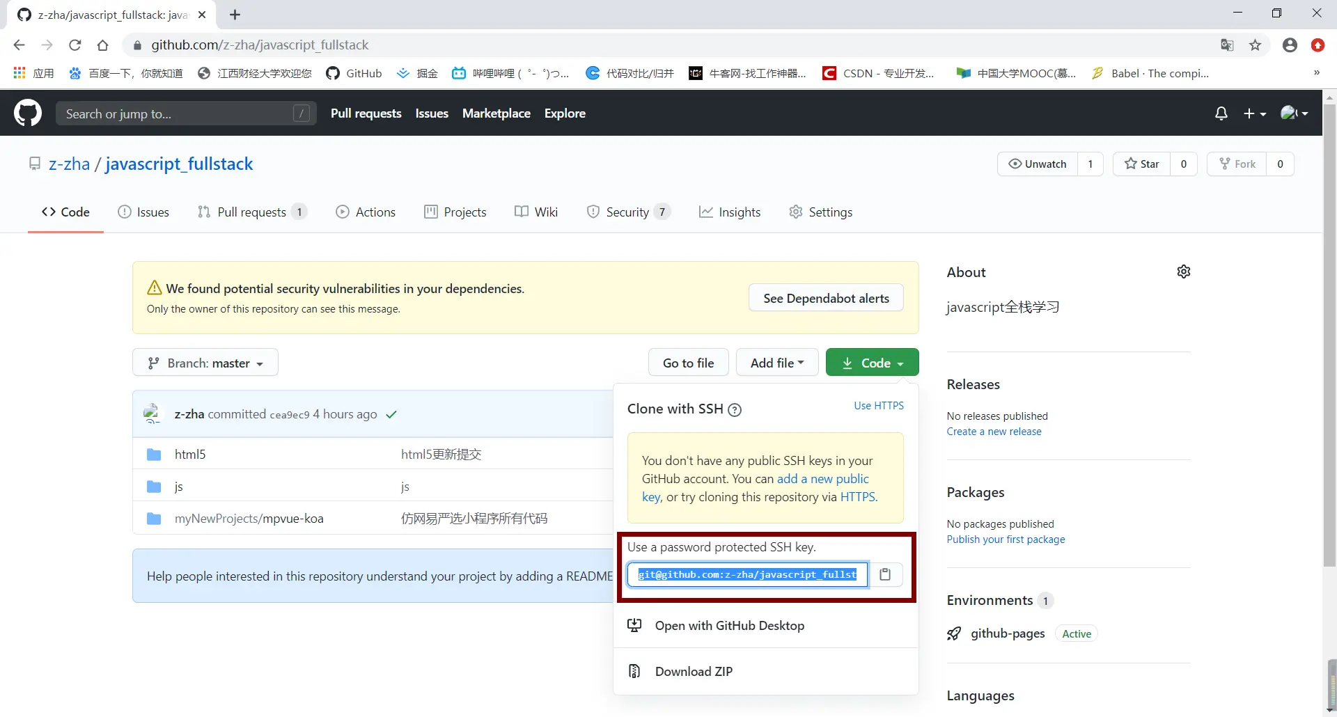 3、有很多东西没有详细写啦,因为这篇文章是写给我自己看的,让我自己能够明白这一次git我是如何操作成功的。记一下我用到的git代码吧,加深一下猪脑子的印象。
