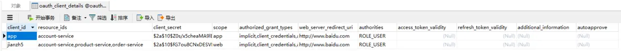 使用jwt的话只需要在数据库存储一下client信息即可,所以我们只需要保留数据表oauth_client_details。!