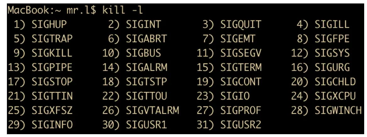 你可以在 Linux 系统上输入 kill -l 来列出系统使用的信号,下面是我提供的一些信号