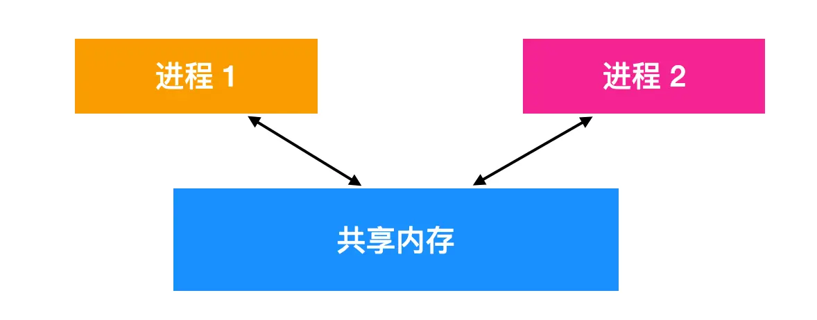 两个进程之间还可以通过共享内存进行进程间通信,其中两个或者多个进程可以访问公共内存空间。两个进程的共享工作是通过共享内存完成的,一个进程所作的修改可以对另一个进程可见(很像线程间的通信)。