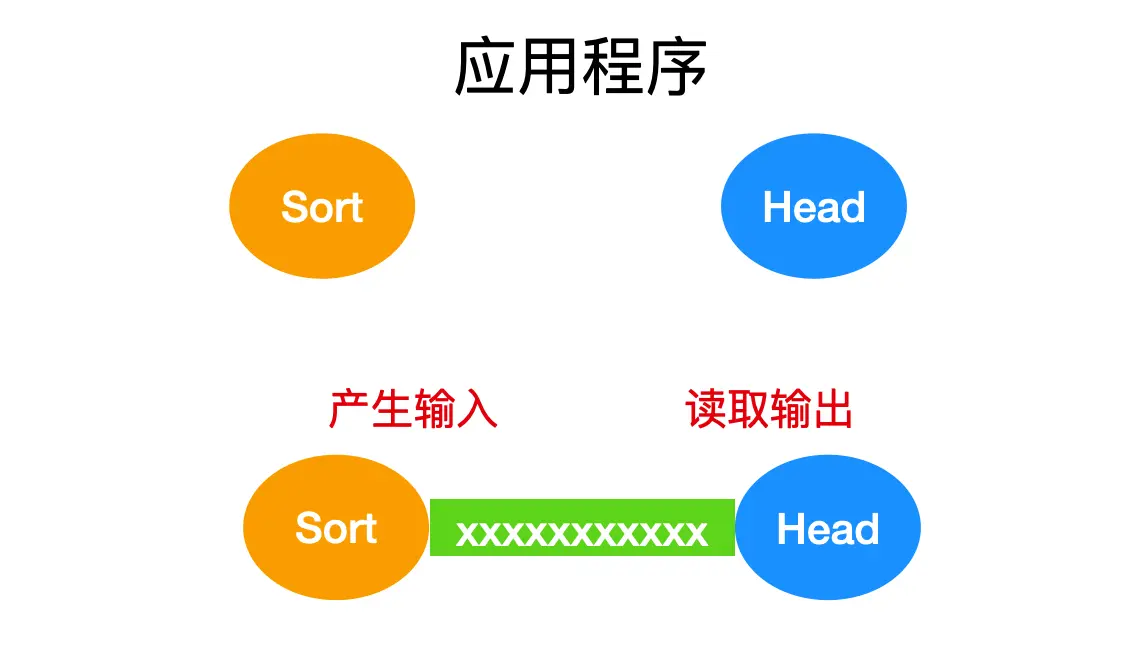 它会创建两个进程,一个是 sort,一个是 head,sort,会在这两个应用程序之间建立一个管道使得 sort 进程的标准输出作为 head 程序的标准输入。sort 进程产生的输出就不用写到文件中了,如果管道满了系统会停止 sort 以等待 head 读出数据