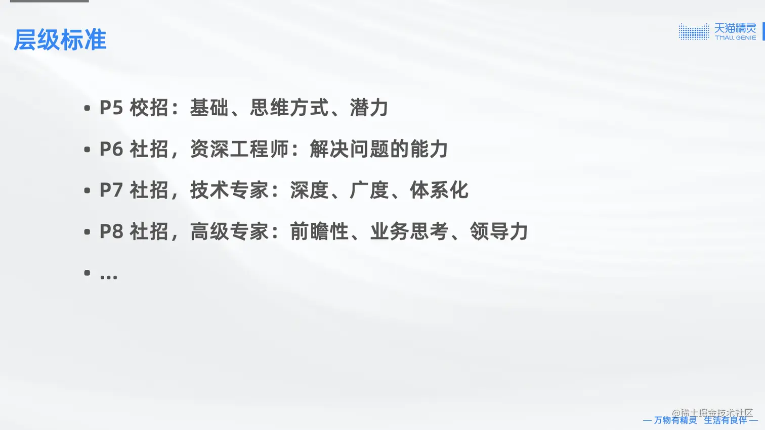 P8:高级专家,在专业及架构能力之外,还要具备业务思维及推动力,具备专业及行业前瞻性,具备建设及驱动团队的能力。