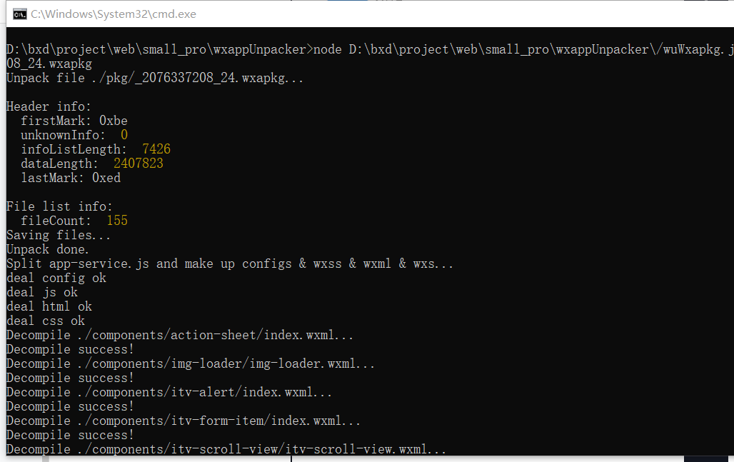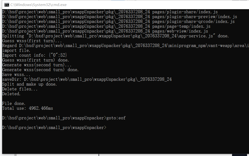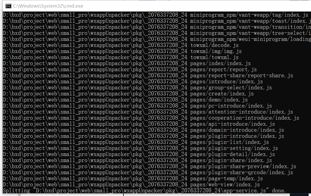 在命令行执行 bingo.bat ./pkg/_2076337208_24.wxapkg