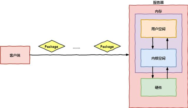- 服务器的网络驱动接受到消息之后,向内核申请空间,并在收到完整的数据包(这个过程会产生延时,因为有可能是通过分组传送过来的)后,将其复制到内核空间;