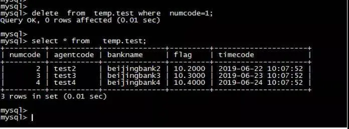 insert into temp.test (numcode,agentcode,bankname,flag,timecode)values(3,'test3','beijingbank3',10.3,'2019-06-23 10:07:52’);