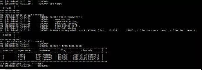 )USING com.sequoiadb.spark OPTIONS ( host '10.139.***.***:11810', collectionspace 'temp', collection 'test') ;