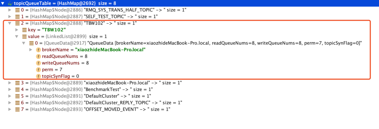 - topicQueueTable保存以topic为维度的queue信息,queue信息以broker为维度。