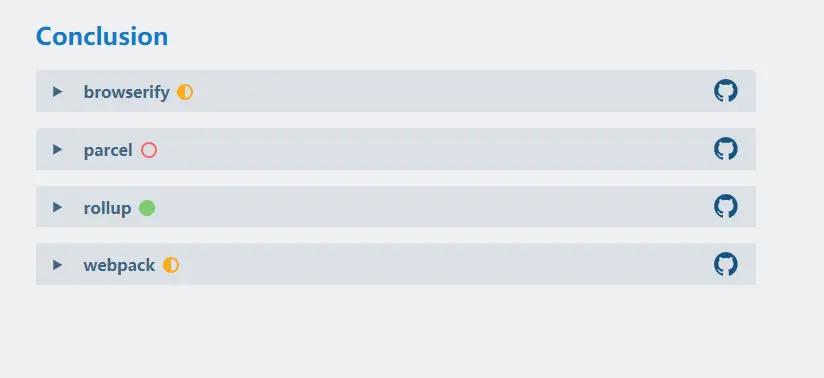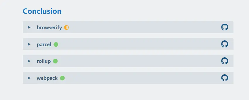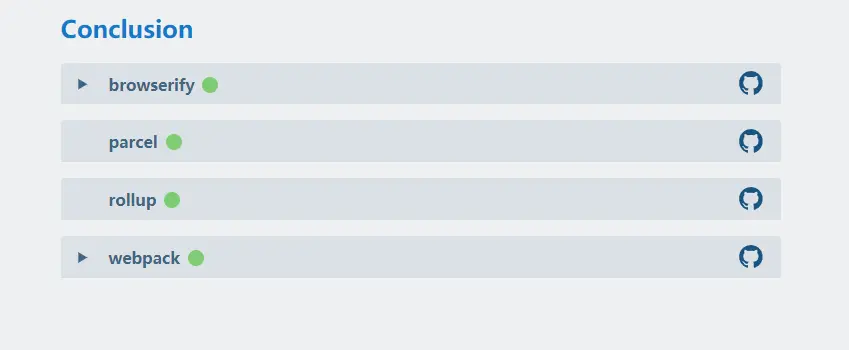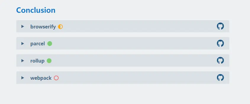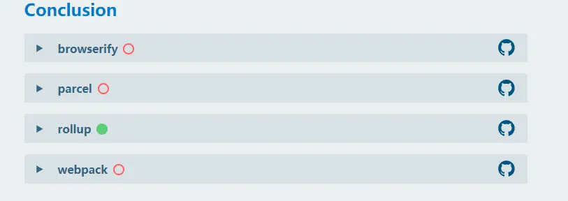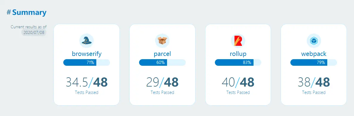 我们知道,在很多团队中,有专门的人员来致力于基础设施的维护,而团队的其他人员只需要直接使用就好。但是在这里我需要强调的是 tooling.reports 对于这列开发者仍然是有意义的。因为对于每一项测试,tooling.reports 都会详细解释为什么这些测试是重要的,各个构建工具该是如何满足这些测试的,并且在 github 提供了这些测试的最佳配置方案。
