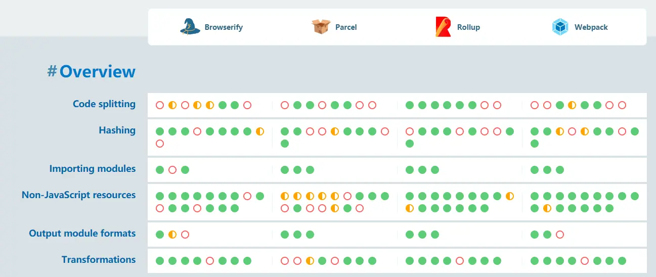 这种体验或者需求会促使我们去研究各种构建工具能做什么?不能做什么?如果此时有一个 features checklist,我们选择时候是不是会更加简单一些?
