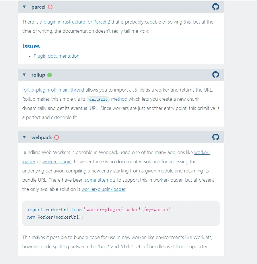 - Between New Worker Type: can entry bundles be created for other contexts ?(是否能对不同的 JavaScript context 的共用部分单独打包)