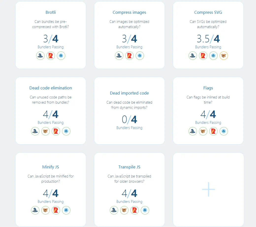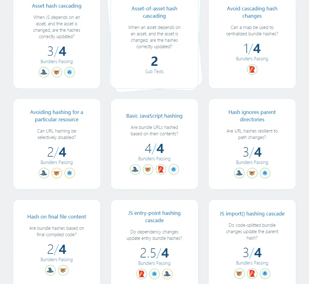 到这里,都是表层的东西。我不禁思考起来,构建工具的哪些特性对于开发者是值得关注的?换种说法,tooling.reports 究竟是怎么选择这些测试特性的?