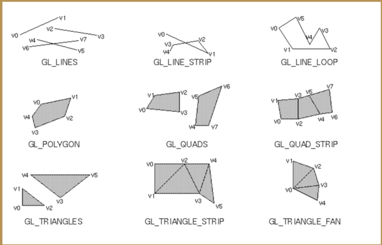 | GL_TRIANGLE_STRIP | 共用一个条带(strip)上的顶点的一组三角形 |