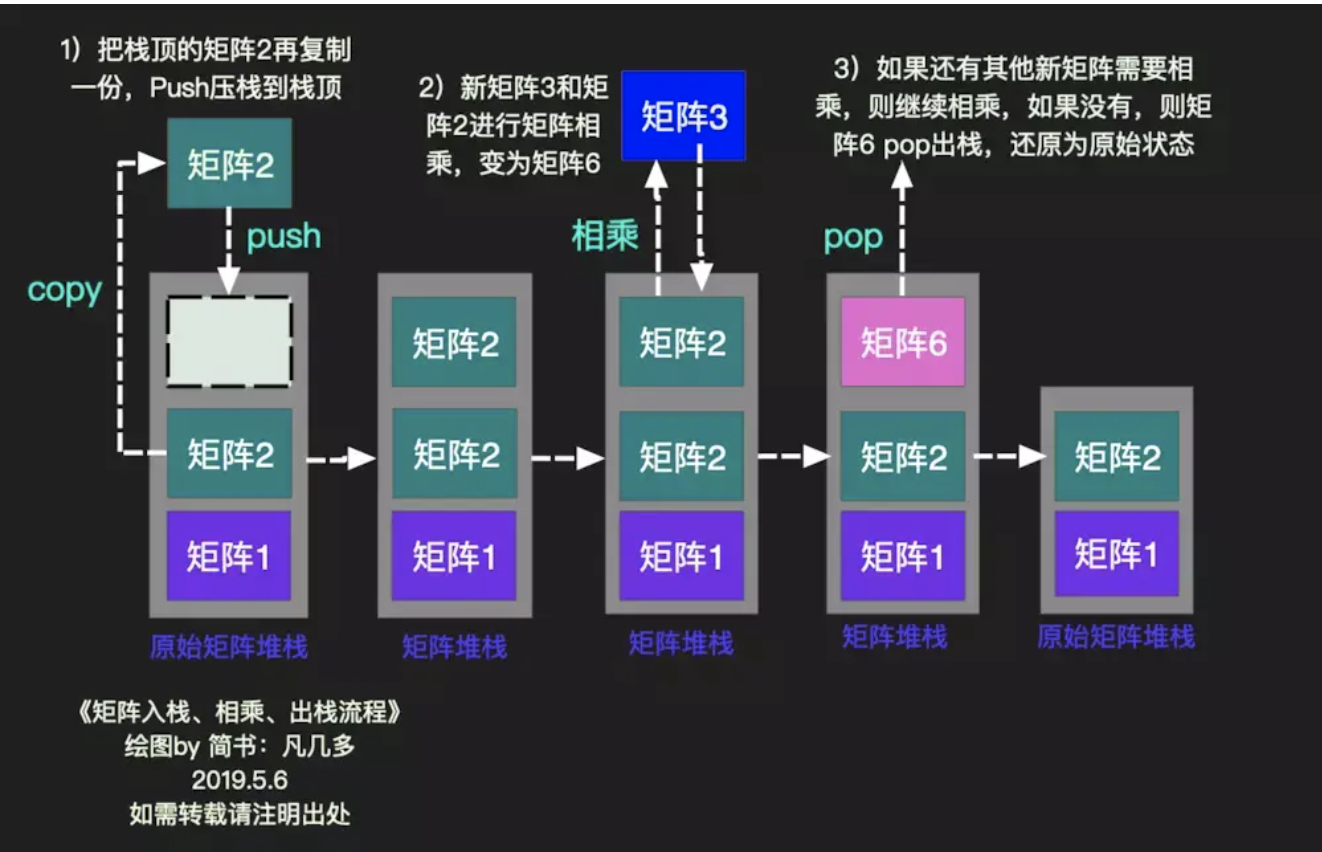 //矩阵乘以矩阵堆栈的顶部矩阵,相乘的结果随后简存储在堆栈的顶部