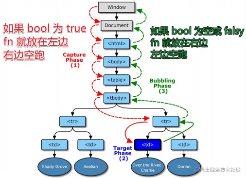 如果bool不传或为falsy,就让fn走冒泡,即当浏览器在冒泡阶段发现baba有fn监听函数,就会调用fn,并提供事件信息