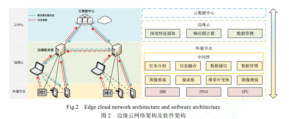 网络架构总体分为终端节点、边缘云和云端数据中心三层: