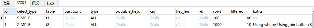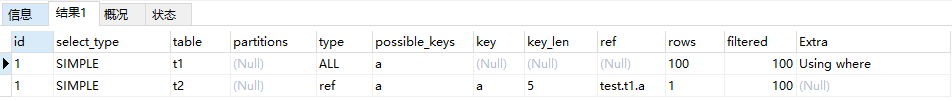 直接使用join,mysql优化器会自己选择驱动表和被驱动表,所以我们这里使用straight_join 来强制t1为驱动表,t2为被驱动表,我们看一下explain结果。