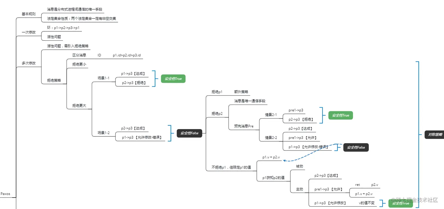 Paxos算法在分布式场景下的重要性可以从Google Chubby作者的言论来看出: There is only one consensus protocol, and that's Paxos 下面就用思维导图的方式来逐步总结一下Paxos算法的推导过程;