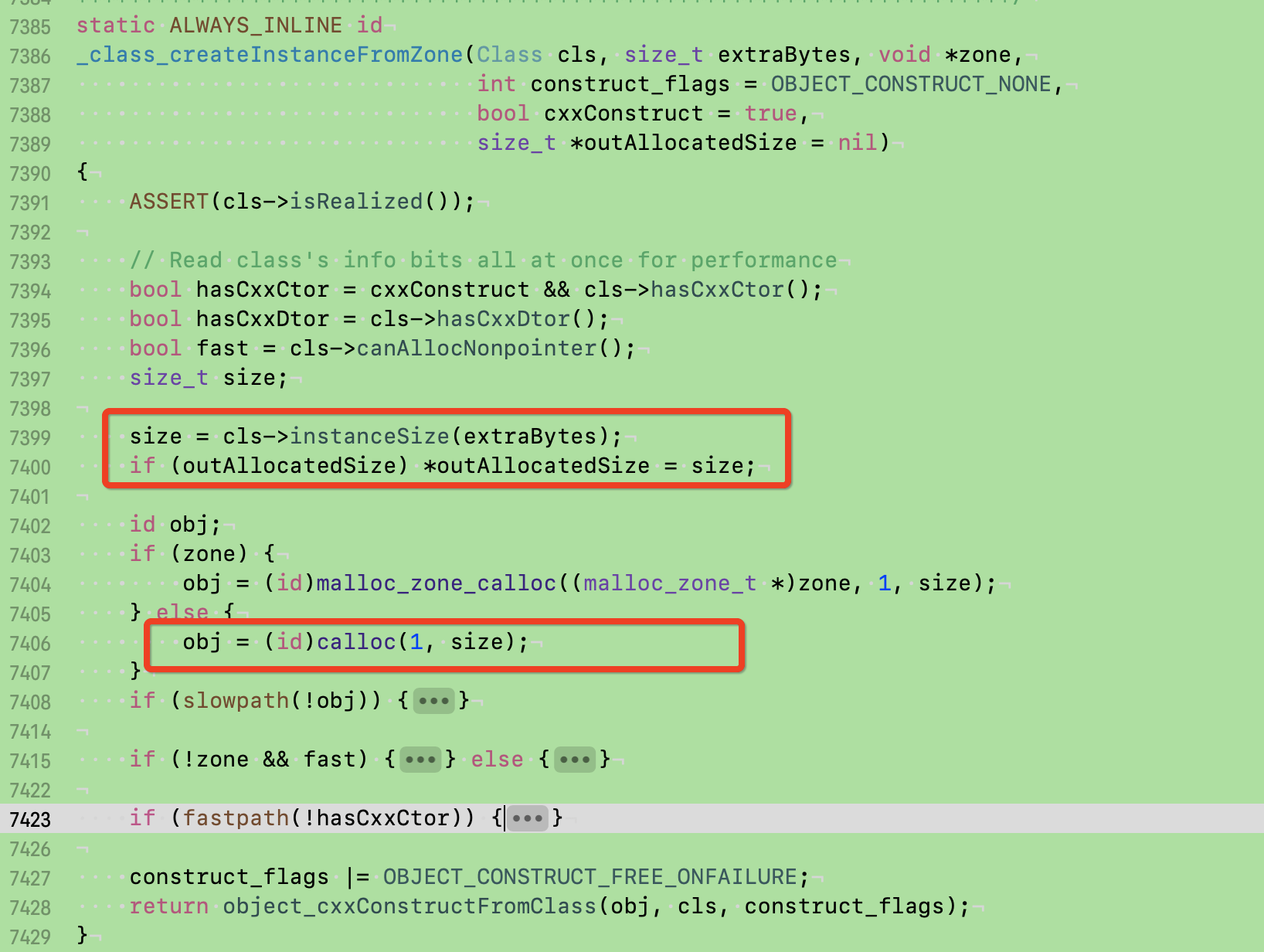 if (fastpath(cache.hasFastInstanceSize(extraBytes))) {