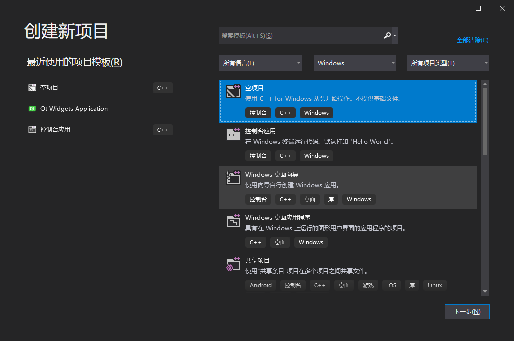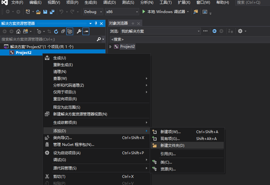 - 新建visual studio 工程,选择一个空项目,在解决方案资源管理器一栏点击显示所有文件,再右击项目,选择添加新建文件夹,命名该文件夹为Src,存放自己写的代码