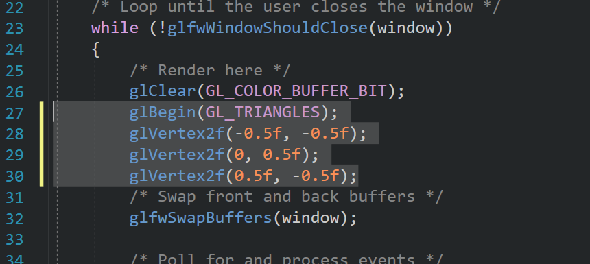glVertex2f(-0.5f, -0.5f);