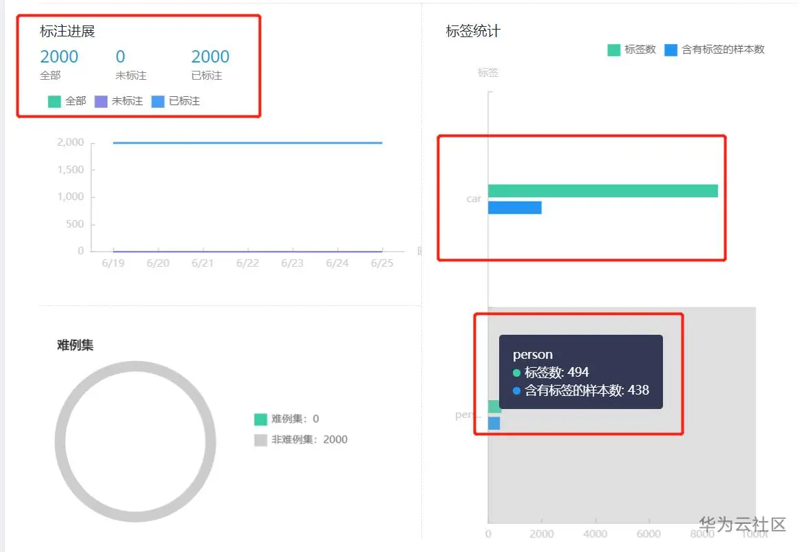 这里使用的数据集较大,是基于VOC 2007数据集中Person类别基础,收集网络图片和各公开数据集整理而成,从OBS桶下载需要耗费大量Money,分享也不太方便。不过,没关系,可以使用官方提供的数据集,无需上传到OBS桶,直接从官方桶中拷贝即可,但缺点是该数据集有行人和车两类,且行人较少,主要是车辆,不太适合,大体数据分布如下: