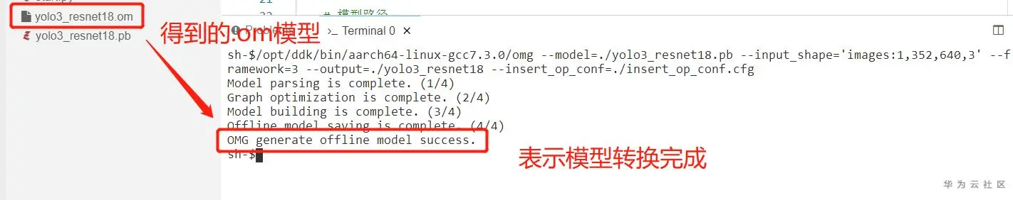 就是先在上面菜单栏开个终端,这个使用linux系统或者熟悉ModelArts的NoteBook的用户都应该比较熟悉了吧。之后用命令行转换模型。
