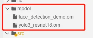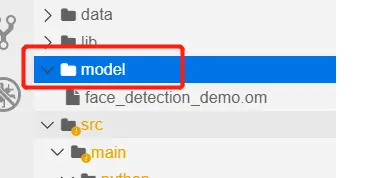 因为模板默认从左侧目录文件夹model中调用模型(这一点,在代码中模型路径部分有写,而文件夹中的face_detection_demo.om是选择人脸检测模板自带的模型,关于模板问题,后面会讲的,可以自行删除哦),所以我们需要将生成的.om模型复制粘贴到该文件夹中,很简单的,直接选中.om模型,直接像在自己电脑上那样 在键盘使用快捷键Ctrl + C(表示复制选中文件), 之后选中model文件夹,使用Ctrl + V (表示粘贴)就行了,不得不说这个设计蛮人性化的哦,用户学习成本很低。