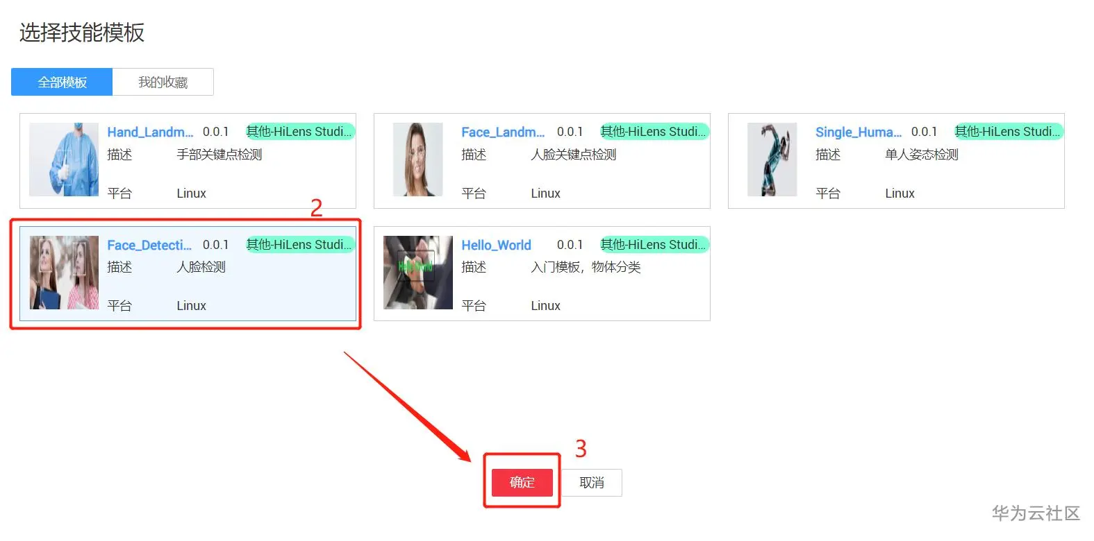 因为使用的是HiLens Studio,请再次确认已申请公测,并通过哦。相关编辑代码部分,比较简单。和大多数IDE类似,首先要创建工程,这里提供了很多模板,不过目前还不能创建空模板,所以自己选一个模板就行,我选的是人脸检测模板,选择后,点击确定就行了哦。之后的简单项目名称之类的,可参照下图哦。