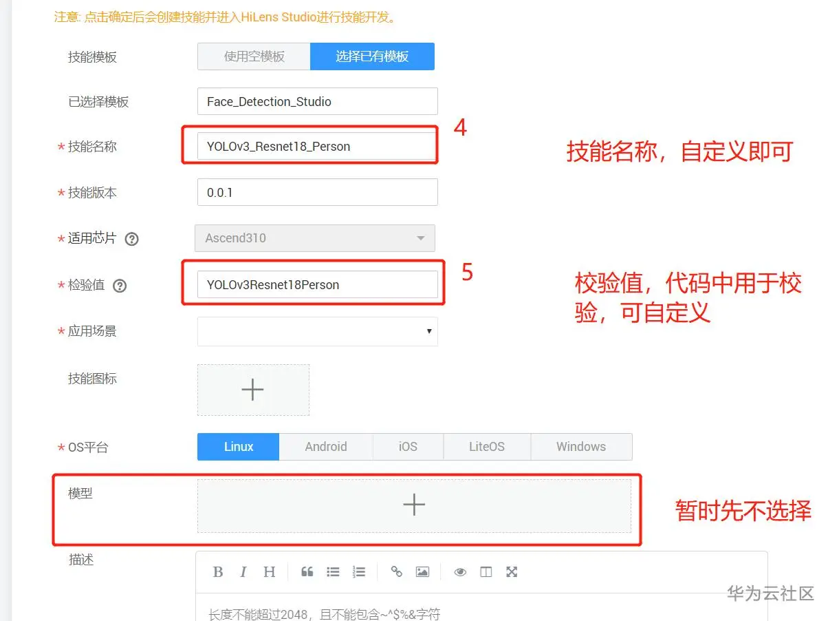 说明一下,这里使用的是ModelArts中基于Ascend 910训练的YOLOv3_Resnet18。链接为:console.huaweicloud.com/modelarts/?… ,同时,AI市场中有基GPU训练的YOLOv3_Resnet18和ModelArts预置算法中的YOLOv3_Resnet18,这两个应该也是可以的,只要最终得到.pb模型并能在HiLens Studio完成模型转换都应该没问题的哦,这两个算法链接分别为:console.huaweicloud.com/modelarts/?… 和 support.huaweicloud.com/engineers-m…