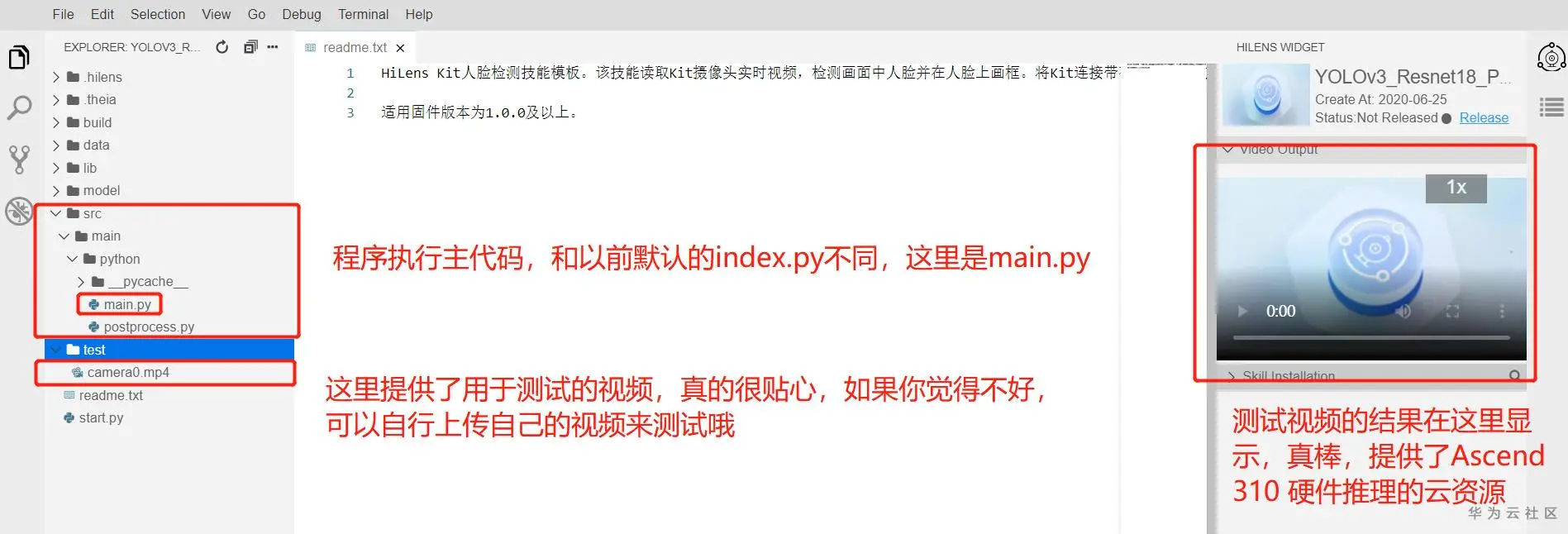# hilens studio中VideoCapture如果不填写参数,则默认读取test/camera0.mp4文件,