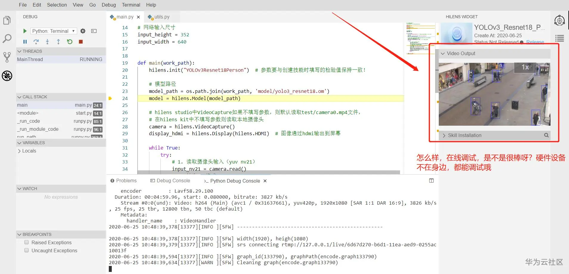 HiLens Studio公测也出来一阵子了,亮点很多,我前些天也申请了公测,通过后赶快尝试了一下,不得不说真的很不错啊,特别是支持云端编辑代码,调试,甚至可以直接运行程序,即使自己的HiLens不在身边,也可以得到程序运行结果,不仅仅是云端IDE这么简单,更是有云端硬件资源支撑,极大降低了开发者负担,开发者只需要一台可以联网的电脑就行了,可以快速验证,验证通过后,直接安装到自己的HiLens上就能应用了,真是太棒了。