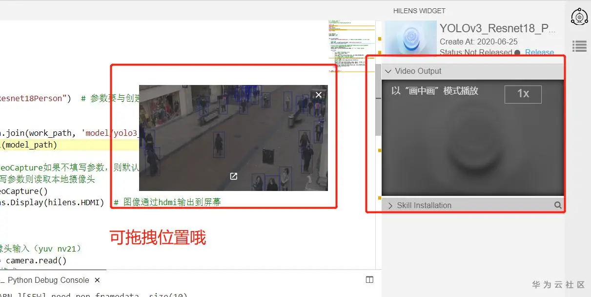 最终效果如下面视频所示,这里非常抱歉,由于我是屏幕录制的,且没有切换到全屏模式,不太清晰,建议大家自己试试,在自己的HiLens Studio里看会很清晰的,同时,附上B站视频链接,以防下面视频失效,无法观看:www.bilibili.com/video/BV1E5…
