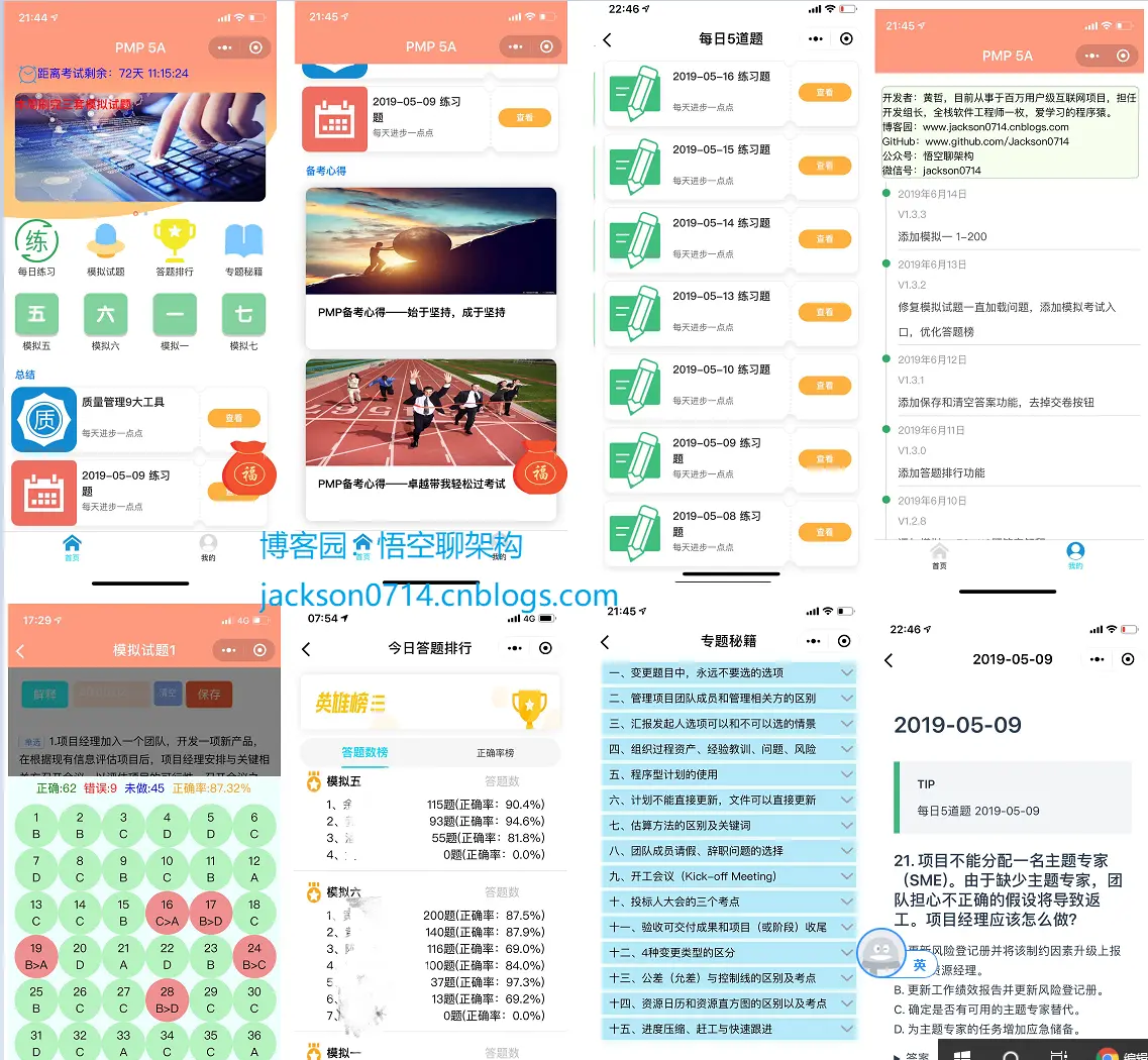 之前考PMP(项目管理认证)的时候,做过一款刷题小程序,分享给了组内考友,用过的都过了!地铁上刷题真的太棒了,有点类似驾考宝典刷题的感觉(详见为了考PMP,我做了一个刷题小程序