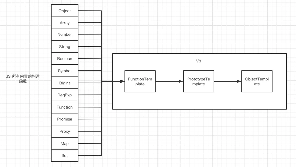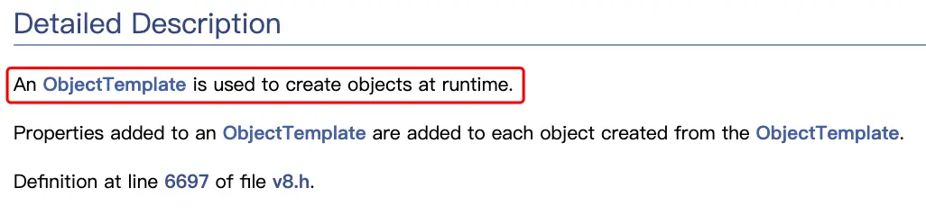 - Js 中函数的原型(prototype)都是通过 PrototypeTemplate 创建出来的,返回值是 ObjectTemplate 实例。