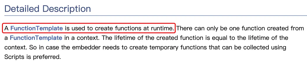 - Js 中的函数都是 FunctionTemplate 创建出来的,返回值的是 FunctionTemplate 实例。
